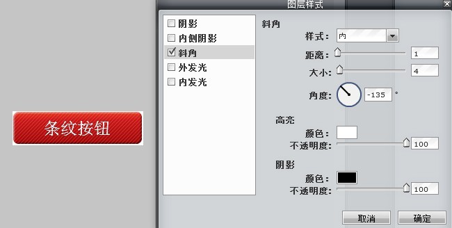 22.点击“图层样式”面板的“斜角”,把距离改为一的效果